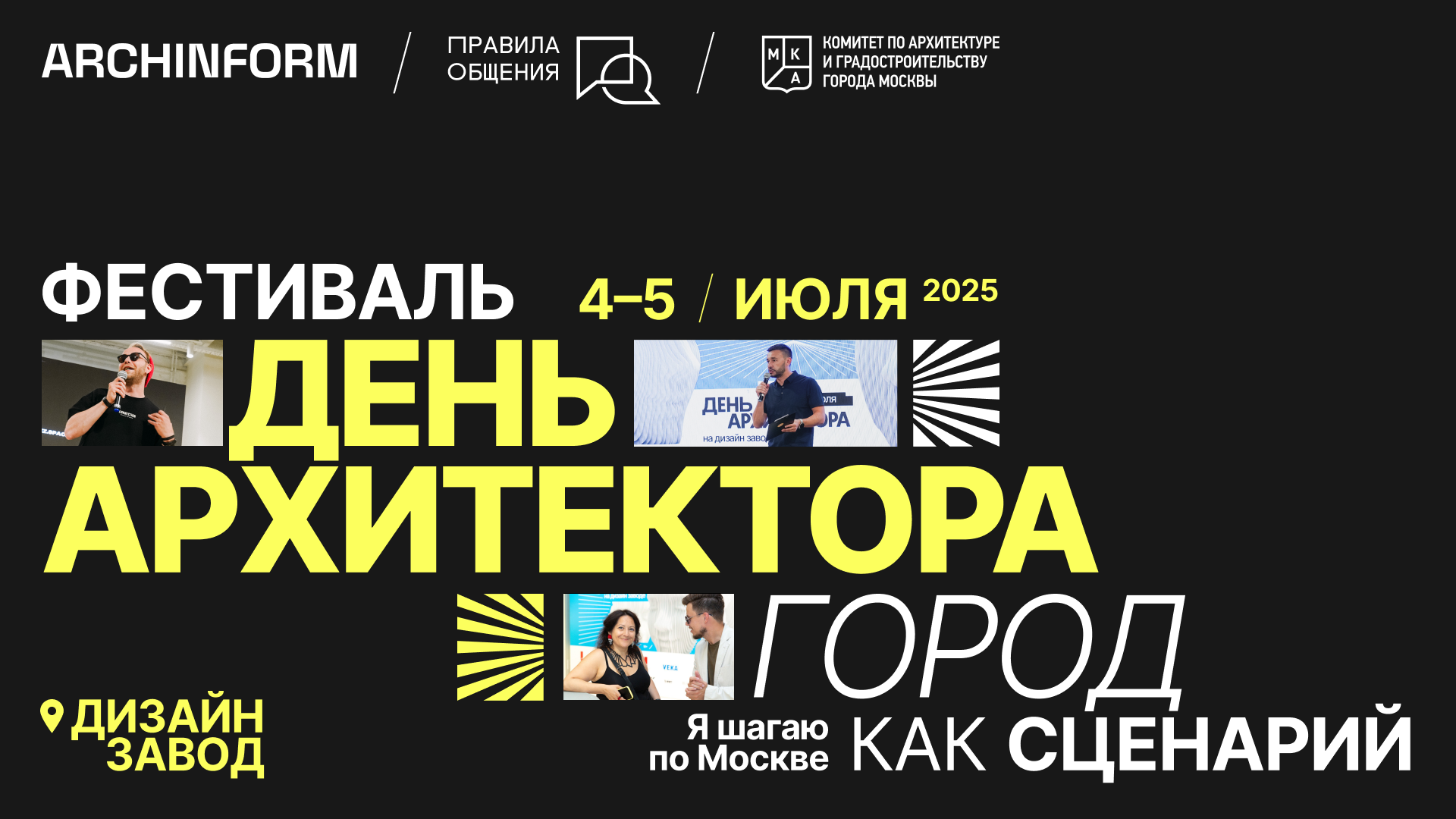 Модераторами презентации станут руководитель программной дирекции фестиваля «Открытый город», генеральный директор агентства «Правила общения» Юлия Зинкевич и приглашенный куратор фестиваля, основатель архитектурного бюро «АБТБ» Тимур Башкаев.